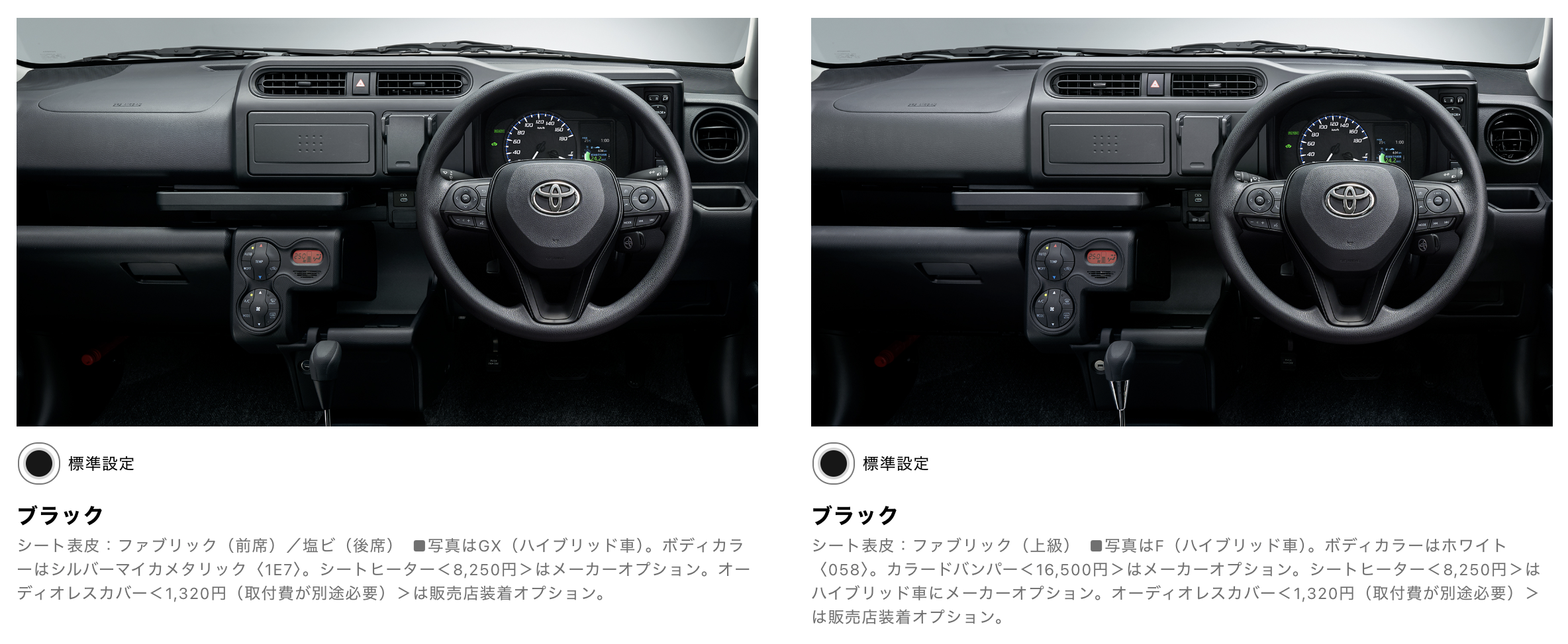 実際にシートとタイヤとパワーウィンドウ以外に大きな違いはあまり無いっていうのが正直なところです、もちろん細かい部分で内装や外装の塗装が少し違うっていうくらい。GXグレードとFグレードの差額が223,300円なので、特にこだわりが無ければGXグレードを購入して後部座席をファブリックシートに14,300円で変更するだけでも良いのかもしれない。