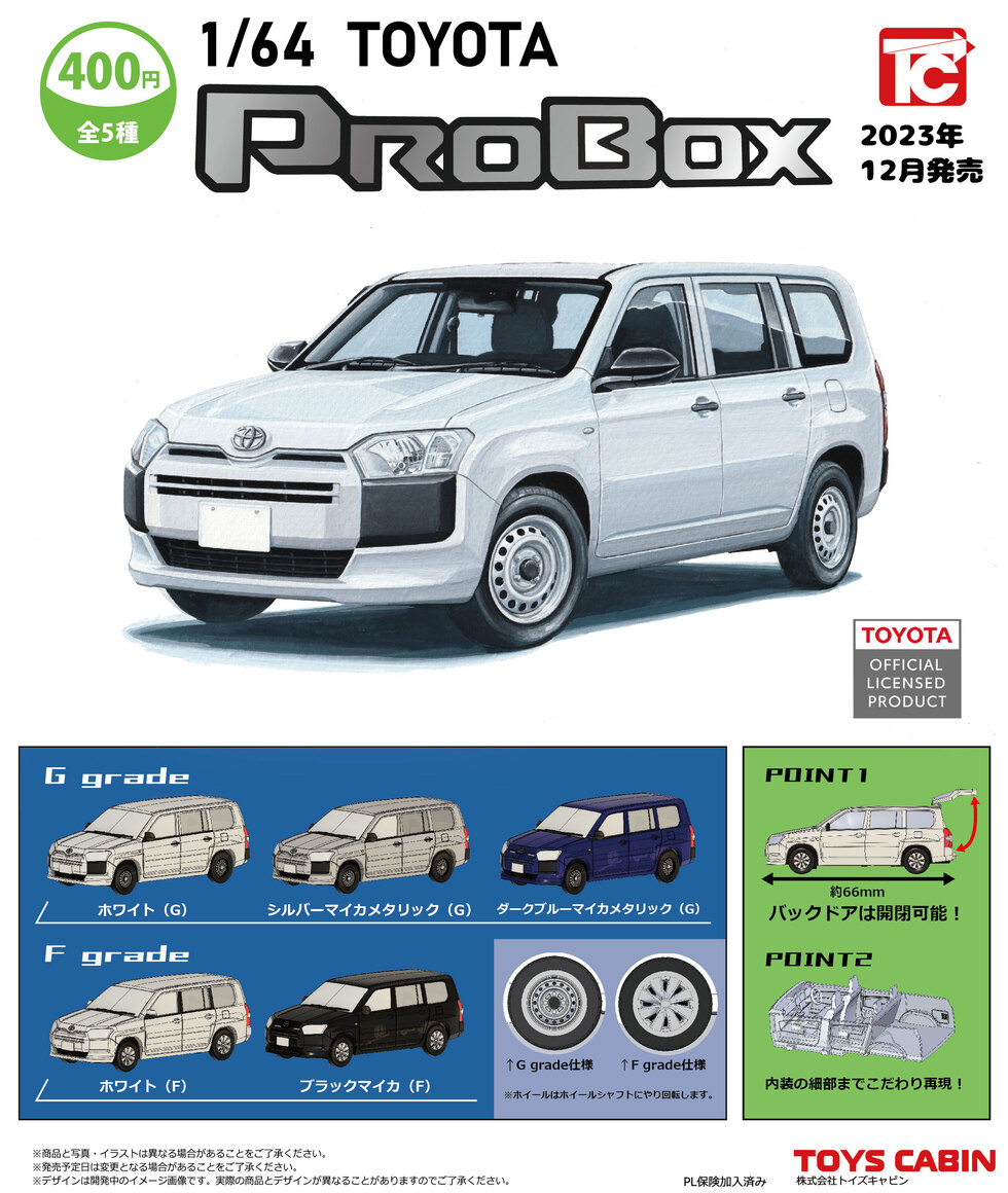 1/64TOYOTAプロボックス 400円 | 商品紹介 - 玩具の製造販売、卸し「株式会社トイズキャビン」 | 玩具(おもちゃ)の製造・卸しの株式会社トイズキャビン。楽しく丈夫で、なにより安全な玩具を提供いたします。